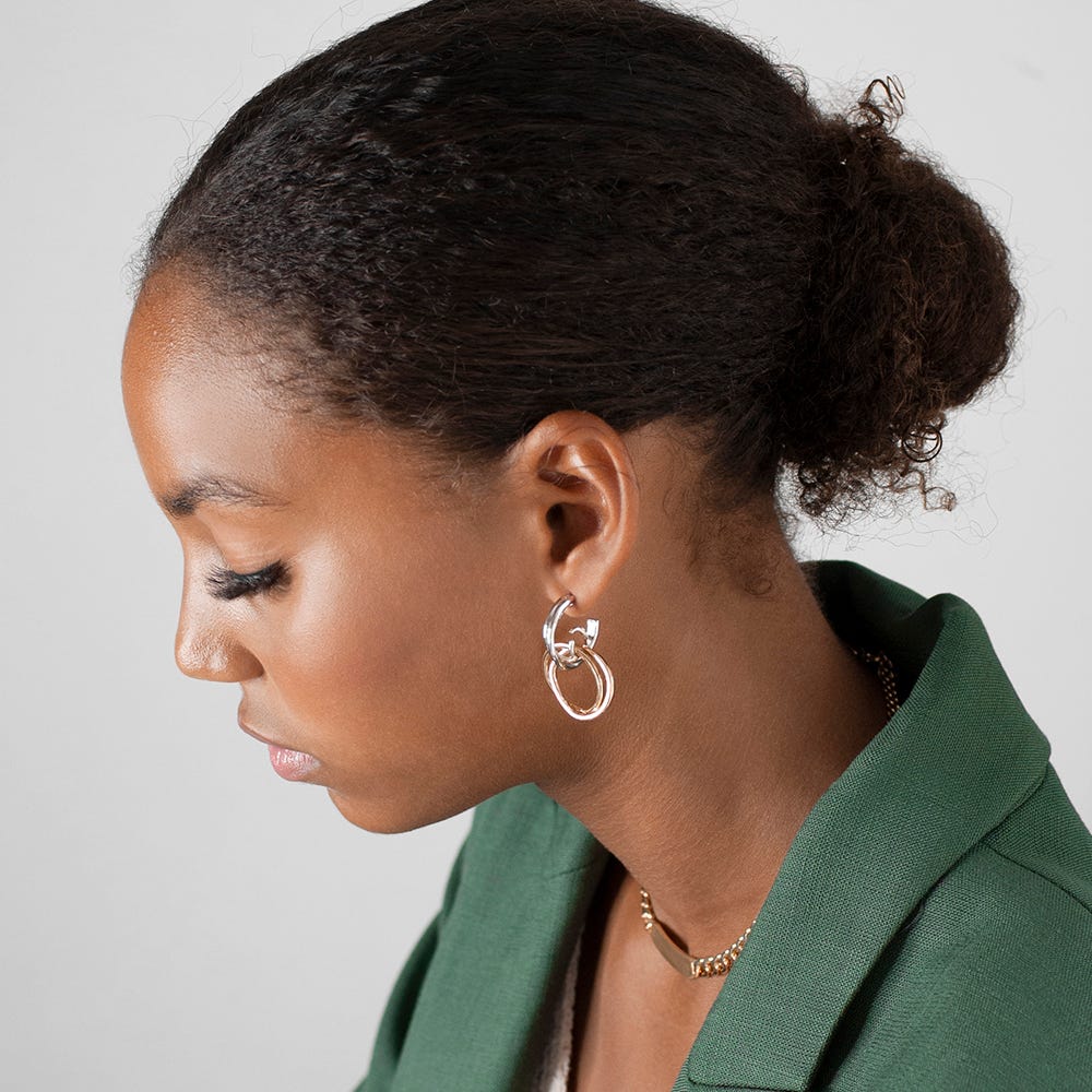 This mixed metal drop earring is clean, classic, and doing good. Shop your pair from the cult-favorite brand HERE.