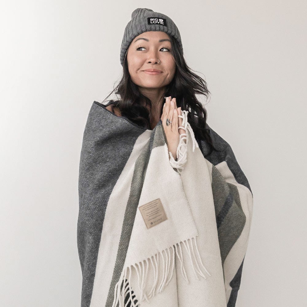 This pure lambswool blanket is a striking textural throw with bold stripes of navy and hunter on a warm white background. Naturally insulating, lambswool is a soft midweight blanket making it the ideal layer. Head to their website HERE and use promo Code MAUI at checkout.